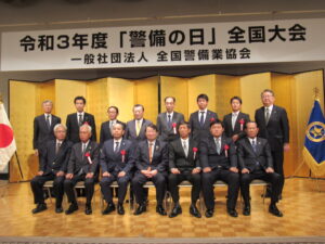 令和3年11月4日、全国警備業協会中山会長から表彰状が授与された。