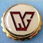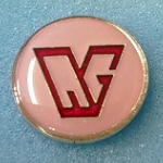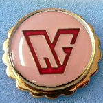 (地色は臙脂色、マークは金色、金縁、直径20mmのピンバッジ)。加盟員価格・一般価格